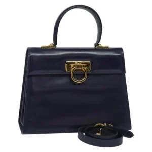 Borsa a Mano Salvatore Ferragamo Gancini Pelle 2 Vie Blu Oro Auth 128064 – Jerrillo