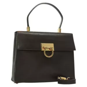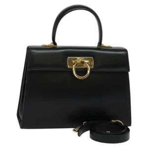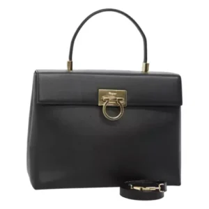 Borsa a mano Salvatore Ferragamo Gancini in pelle 2 vie nero oro Auth kk442 – Jerrillo