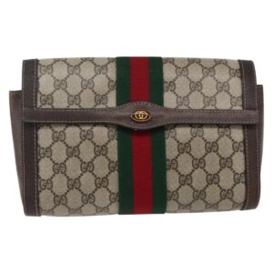 GUCCI GG Supreme Web Sherry Line Clutch Bag PVC Beige Gold Auth ep12975 – Jerrillo
