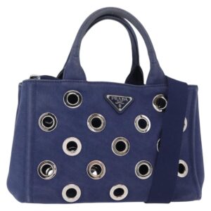 Borsa a mano PRADA Canapa PM in tela 2 vie blu argento Auth 153195 – Jerrillo