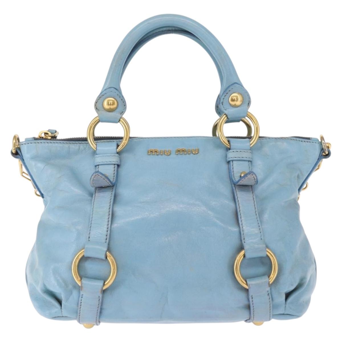 Miu Miu Hand Bag Leather 2way Light Blue Gold Auth 157529 – Jerrillo