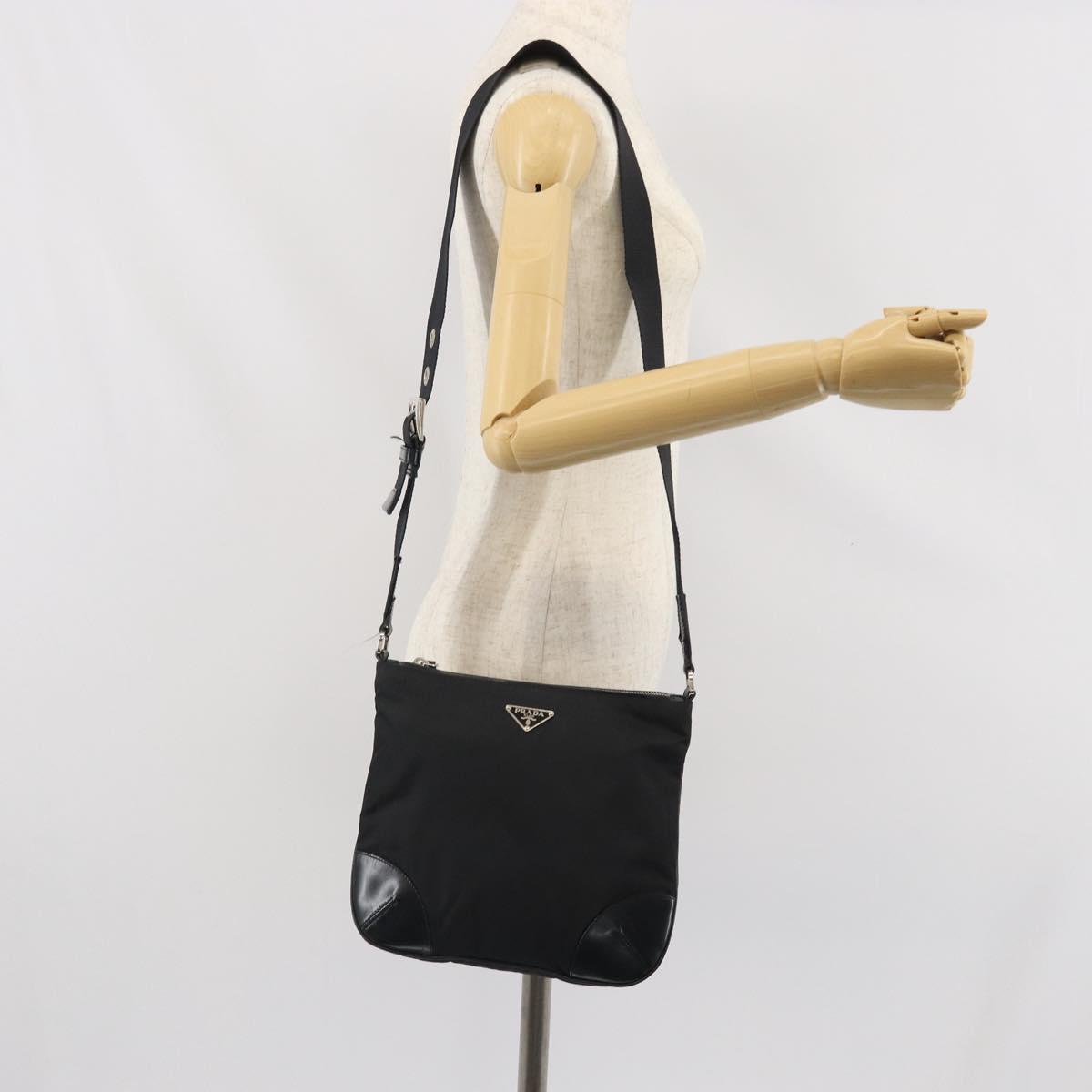 Borsa a tracolla PRADA in nylon e pelle nera e argento Auth 169453 – Jerrillo