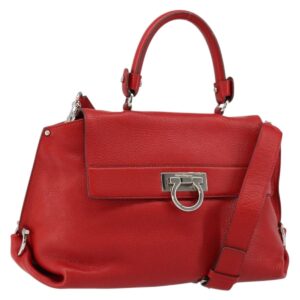 Salvatore Ferragamo Gancini Borsa a mano in pelle 2 vie Rosso Argento Auth 157236 – Jerrillo