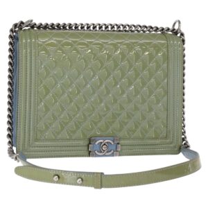 CHANEL Borsa a tracolla Chanel Chain Boy in pelle verniciata verde blu CC Auth 152239 – Jerrillo