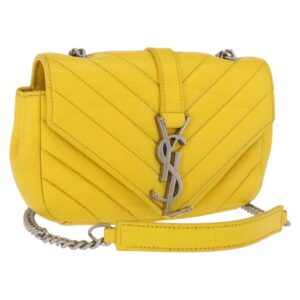 SAINT LAURENT Chain Cassandra Shoulder Bag Leather Yellow Silver Auth 165434 – Jerrillo
